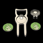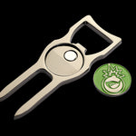 Keep your local greens pristine and your game flowing with the BombTech Divot Tool and Hat Clip Ball Marker! This essential tool makes fixing divots quick and easy, and did we mention it can open your ice cold beverage?!