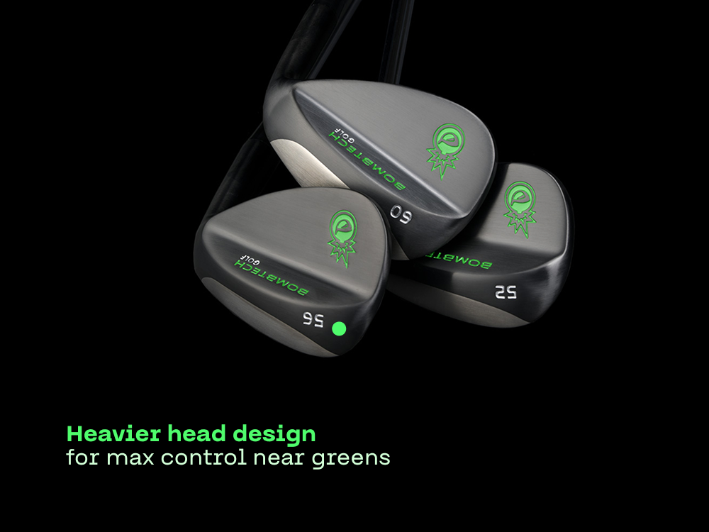 My best selling golf wedge set just got sexier! Your buddies will be jealous. The set includes a 52 Degree Gap Wedge, 56 Degree Sand Wedge and 60 Degree Lob Wedge. The BombTech black golf wedges are slightly oversized to make even your bad shots look pretty freaking good.
