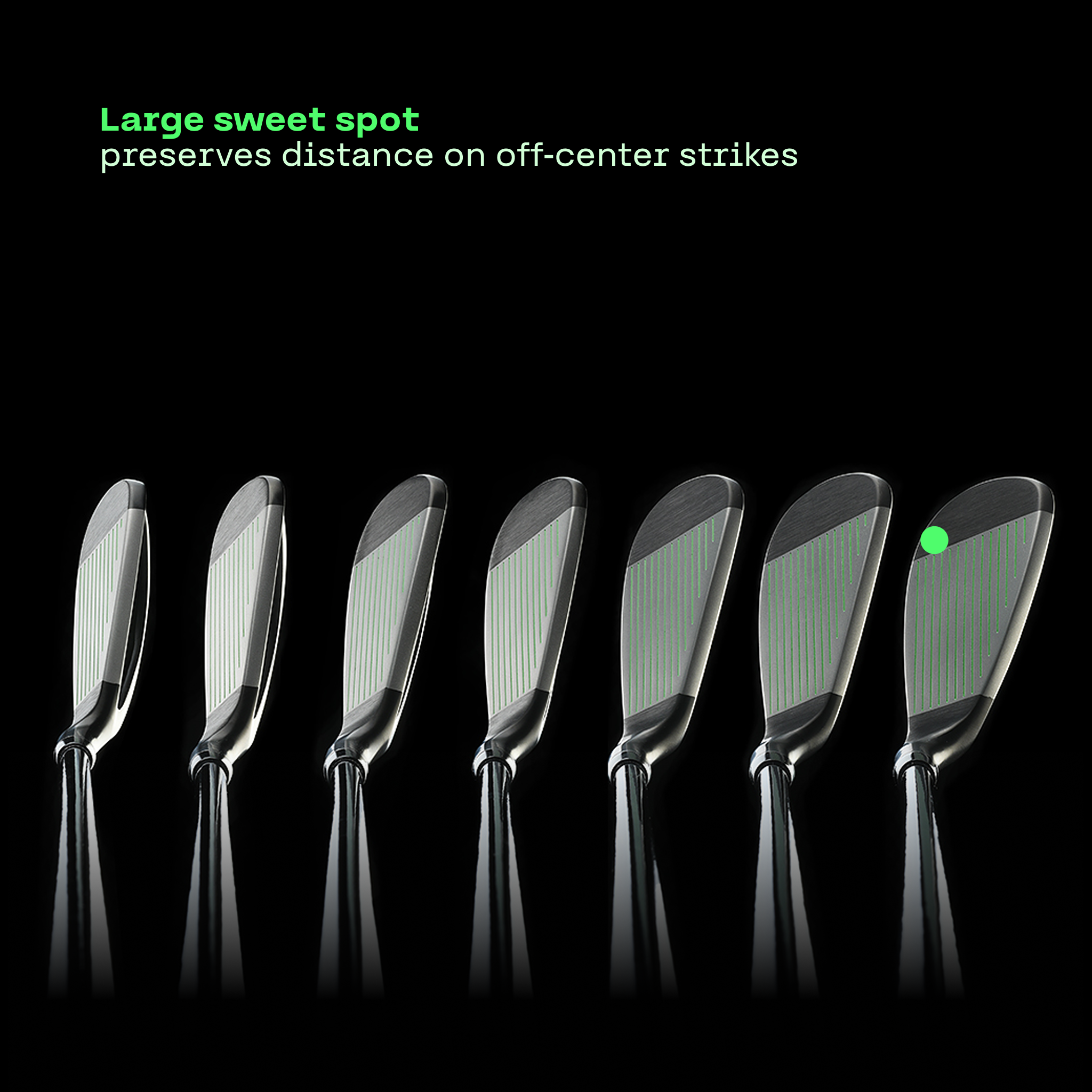 - Unsupported face design that increases COR (coefficient of restitution) across the entire face