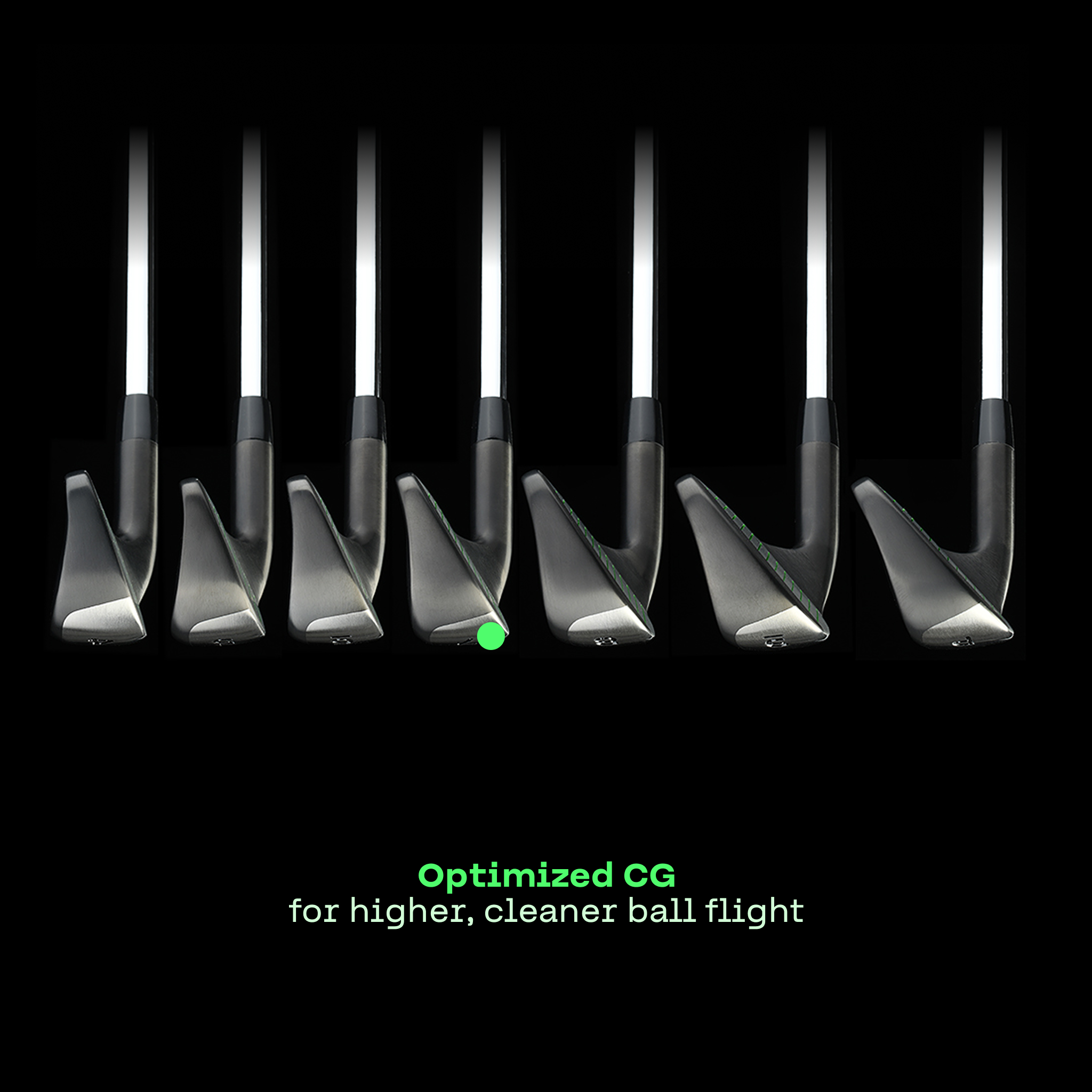- Iron heads incorporate an undercut cavity that shift the CG (center of gravity) rearward for a higher MOI (moment of inertia)