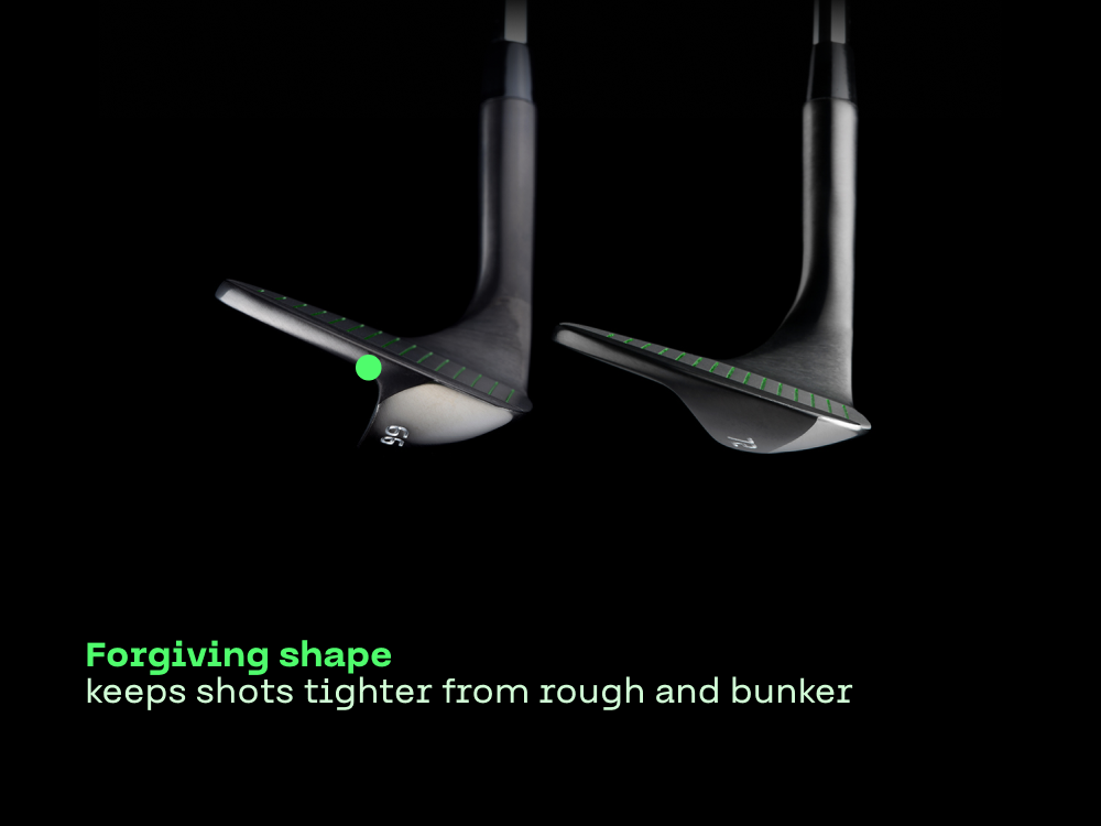 The 66 degree lob wedge was designed with an oversized sole and face to give you extreme confidence from the sand. You no longer need to open the club face or change your swing from the sand.