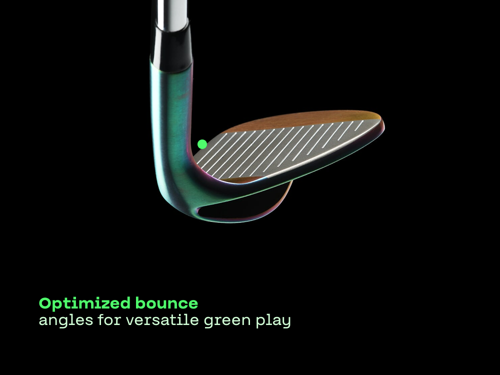 - Optimized sole bounce provides versatility in a variety of turf conditions: bunker, fairway, rough, divots, hard pan