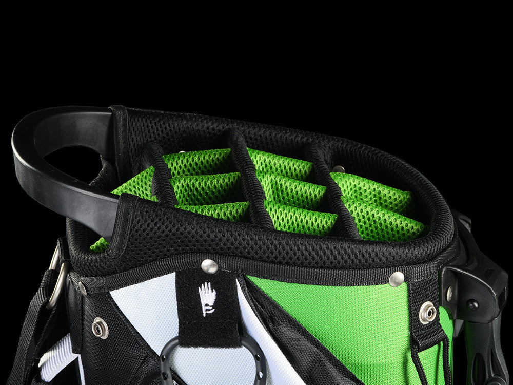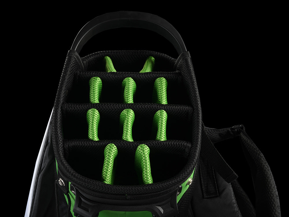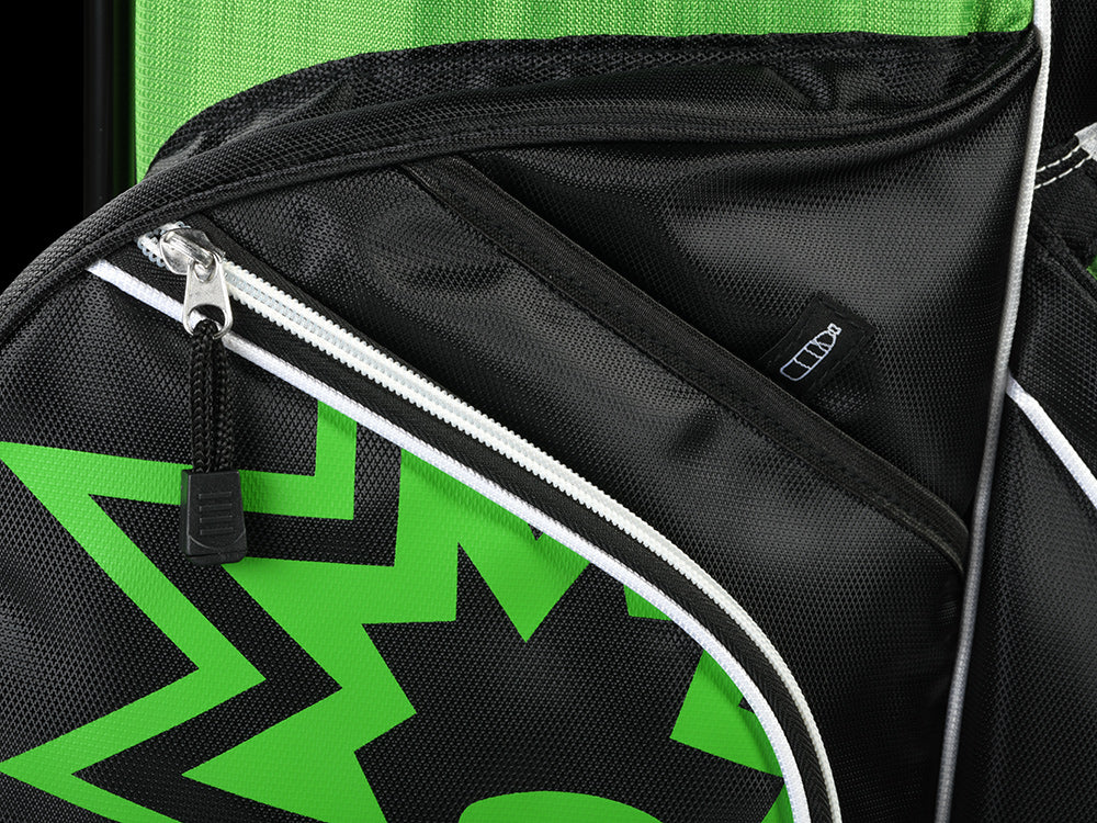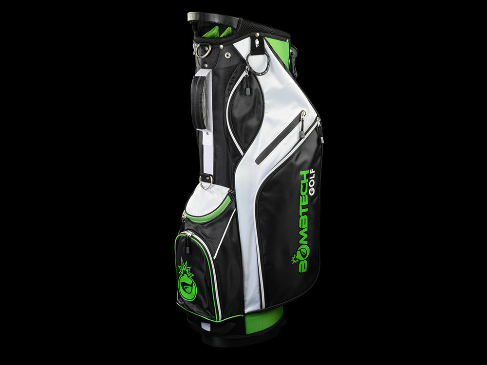 If you’ve ever seen a Bomb Tech ad, you have seen one of my comments raving about BT’s clubs (seriously I get accused of being a paid commenter once a week!)! They really elevated my game, and made it affordable for me to have a quality set and fall in love with the game even more… when it was time for a new bag, there was no way I could go with anything other than this one and tbh I couldn’t be happier! It’s high quality, light weight, durable… I love the kick stand! Tons of pockets and storage.plus the green and black pops on the course! My only criticism is that although it has a little drink pouch (big enough for one, possible 2 beers), it would really be great if it had a built in cooler. Thank you for your service and for growing the game of golf!