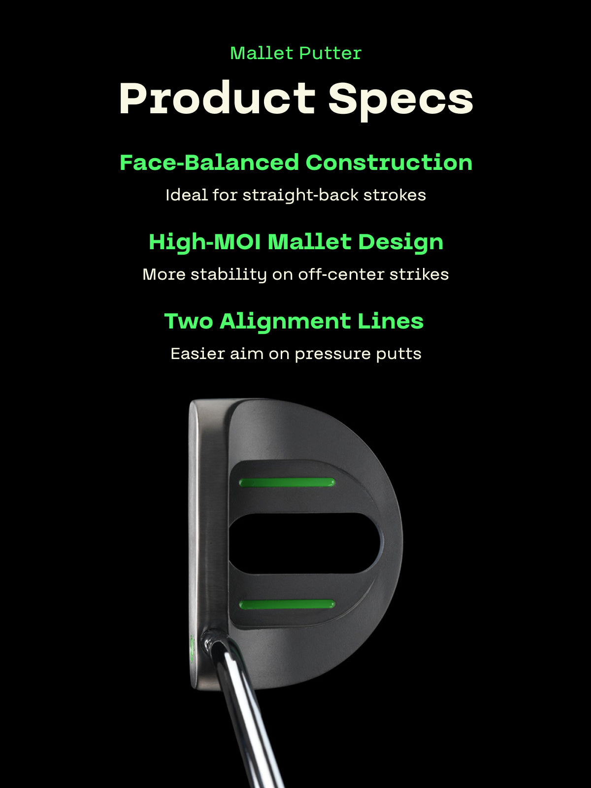 My mallet putter will give you the confidence you need when you really need to make that putt! The high MOI design will help keep your putts on target and the slightly heavier weight will give you the control that you deserve. There is a reason this putter is always sold out! Don't miss it.